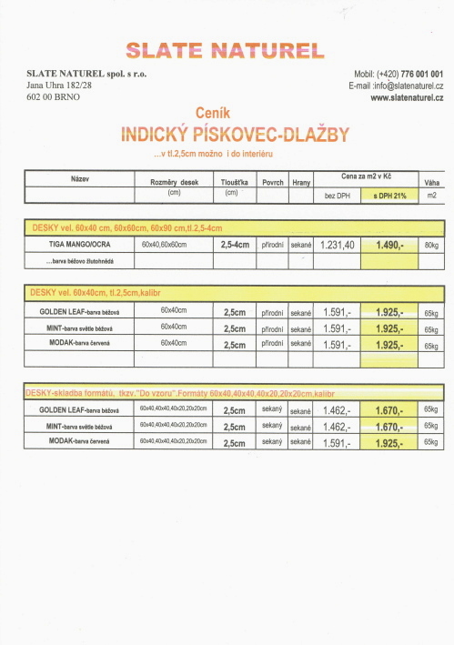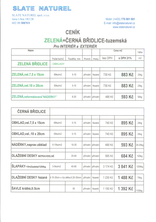 CENÍK ZELENÁ a ČERNÁ BŘIDLICE 2024